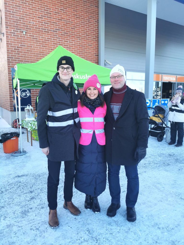 Keskustan Satakunnan piirin toiminnanjohtaja Leena Pellikka oli mukana kierroksella ja totesi, että vaalityö on lähtenyt maakunnassa hyvin käyntiin.