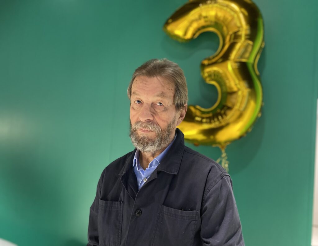 Rehn saapuu sovitusti illansuussa kampanjatoimistolle ja toivottaa ihmiset tervetulleeksi Stadin sydämeen.