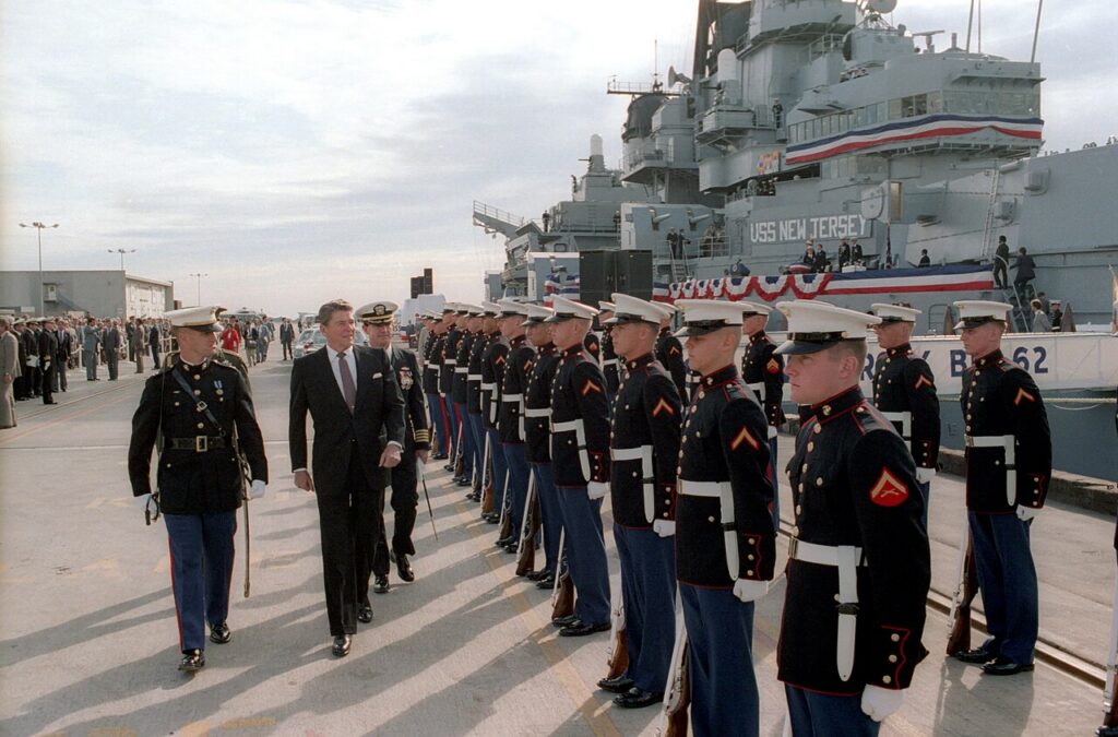 Reagan huomautti New Jerseyn käyttöönottoseremoniassa Long Beachissa joulukuussa 1982, että Neuvostoliiton sotilaallisen voiman kasvaessa kasvoi myös heidän halunsa ryhtyä sotilaallisiin seikkailuihin.