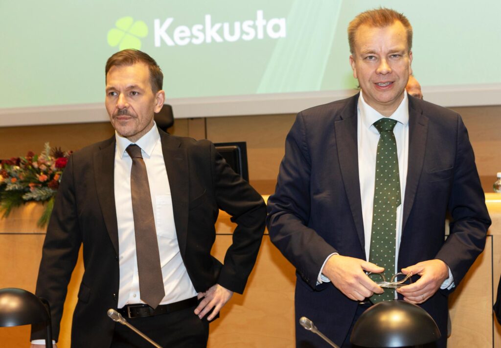 Puoluesihteeri Antti Siika-aho ja puheenjohtaja Antti Kaikkonen Lappeenrannassa keskustan puoluevaltuuston kokouksessa. (Jari Laukkanen)