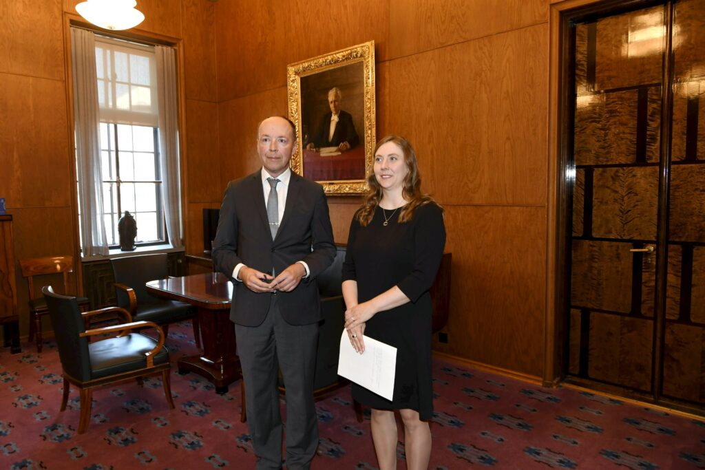 Karlsson ja Kontu esittivät tiistaina valtakirjansa puhemies Jussi Halla-aholle (ps.).