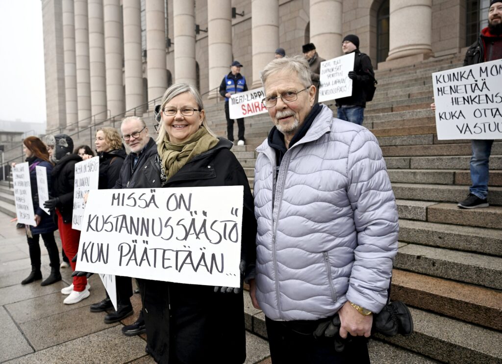 Merilappilaiset puolustivat sairaalaansa Eduskuntatalon edessä – ministeri Juuso ei tullut paikalle