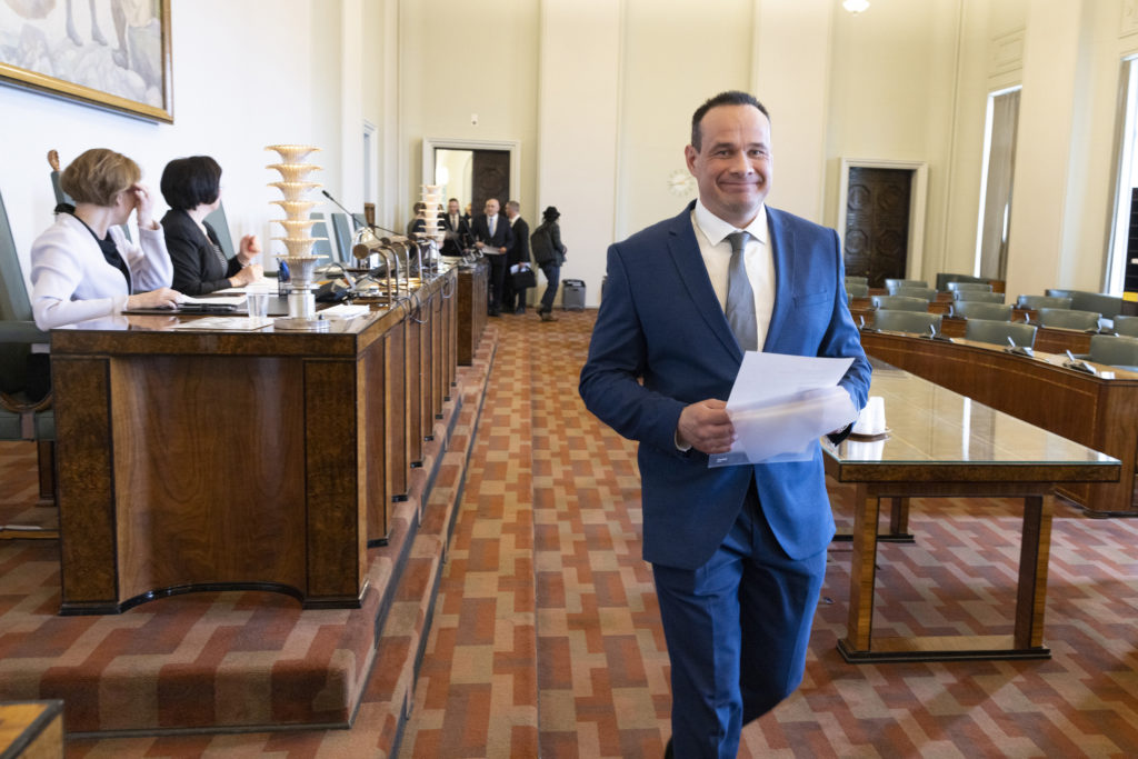Tuore kansanedustaja Mikko Polvinen valtakirjojen tarkastuksessa 11. huhtikuuta 2023. Kuva: Hanne Salonen/Eduskunta