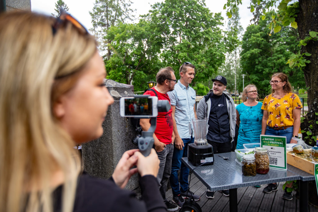Vatanen kiertelee käynnissä olevan Satoa Goes Wild -ruokafestivaalin kojuja. Festivaalin makuelämyksiä on saatu paikallisesta villiruuasta, kuten sirkoista ja hormista.